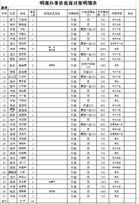 低保对象名单及相关信息