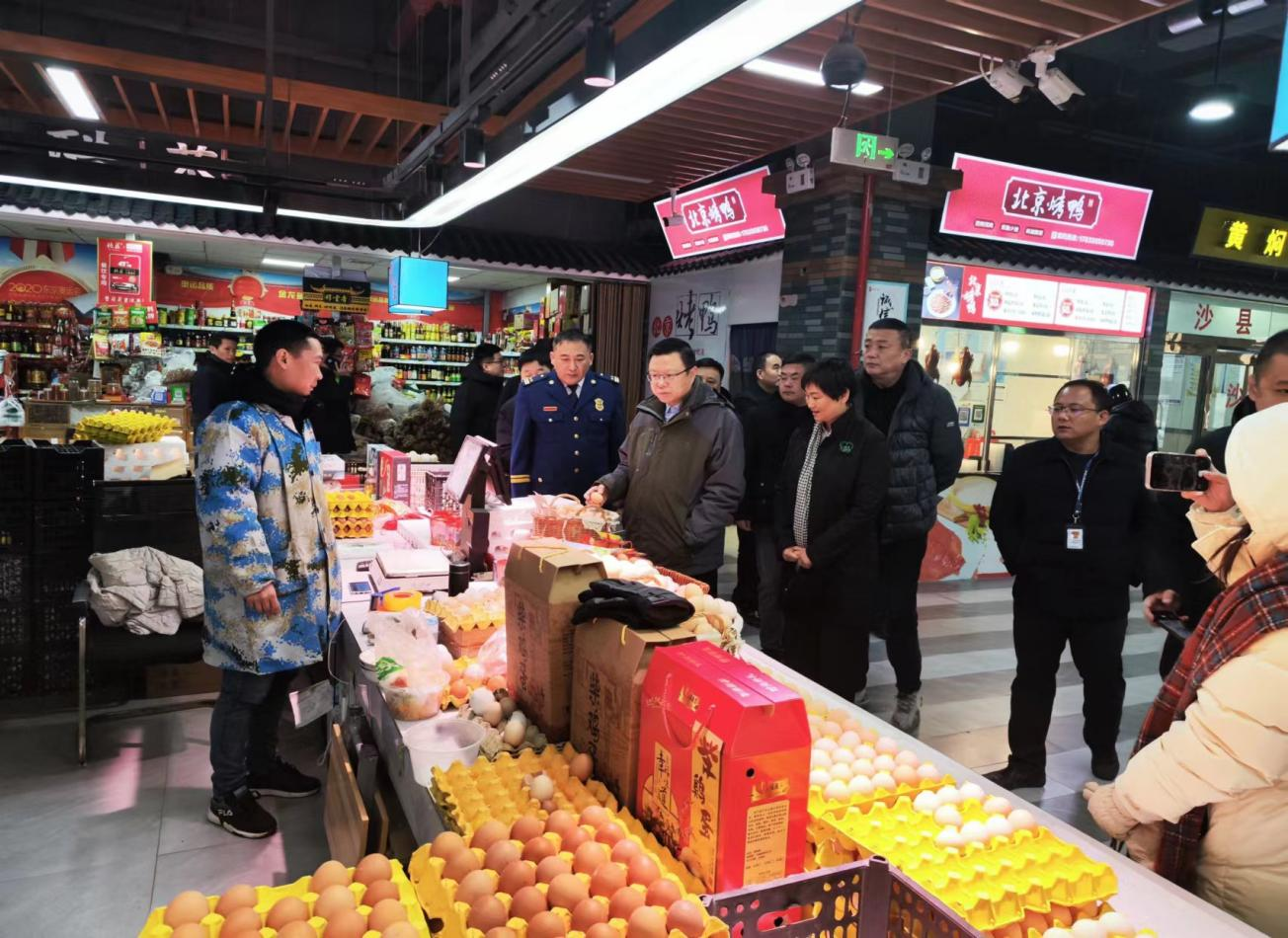 在营岗民乐集农贸市场,张波一行仔细察看市场营运管理、食品安全和消防安全情况,逐摊位检查物资保供、食品安全等工作,并与商户亲切交谈,详细了解货源组织、物资销售、经营收入等情况。他强调,农贸市场是城市生活的重要组成部分,更是展示城市文明形象的重要窗口。要进一步完善市场配套功能,加强规范管理,落实安全措施,全力打造舒心、放心、安心的惠民便民消费环境;要做好节日保供稳价和食品安全监管工作,确保生活物资价格稳、供应足、不断链,全力保障好人民群众的“菜篮子”,守护好人民群众“舌尖上的安全”。