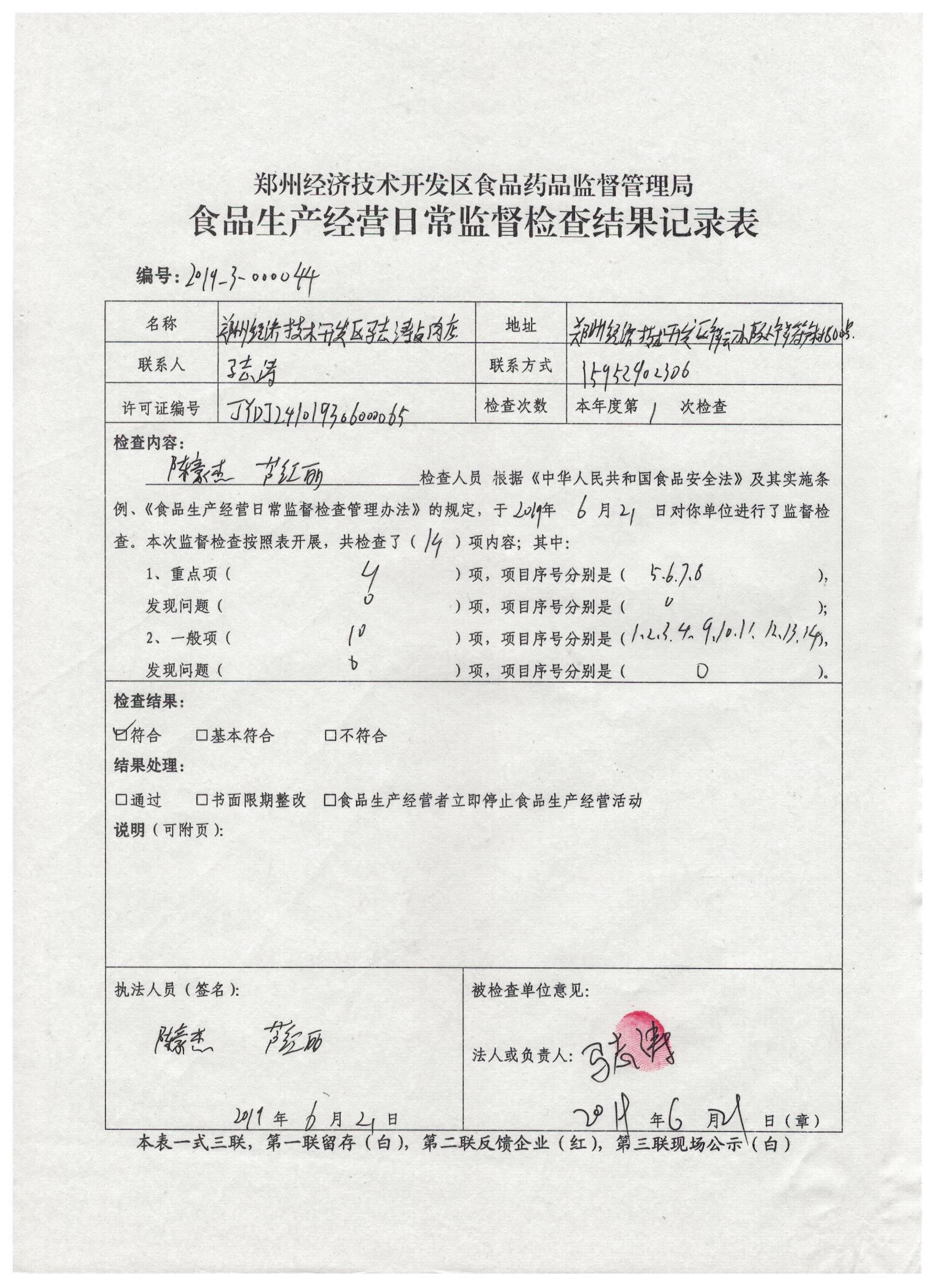 郑州经济技术开发区马志涛卤肉店2019年第一次检查